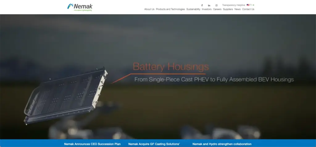 Specific Description: Nemak is a major automotive-focused aluminum components manufacturer with a global footprint and deep experience in lightweight solutions for e-mobility, structure/chassis, and ICE powertrain applications. Its public positioning emphasizes large-scale manufacturing capabilities and engineering for complex, performance-critical cast parts used in vehicles. For sourcing teams that prioritize automotive experience, volume readiness, and process maturity, Nemak is commonly evaluated as a strategic supplier rather than a spot-buy foundry.