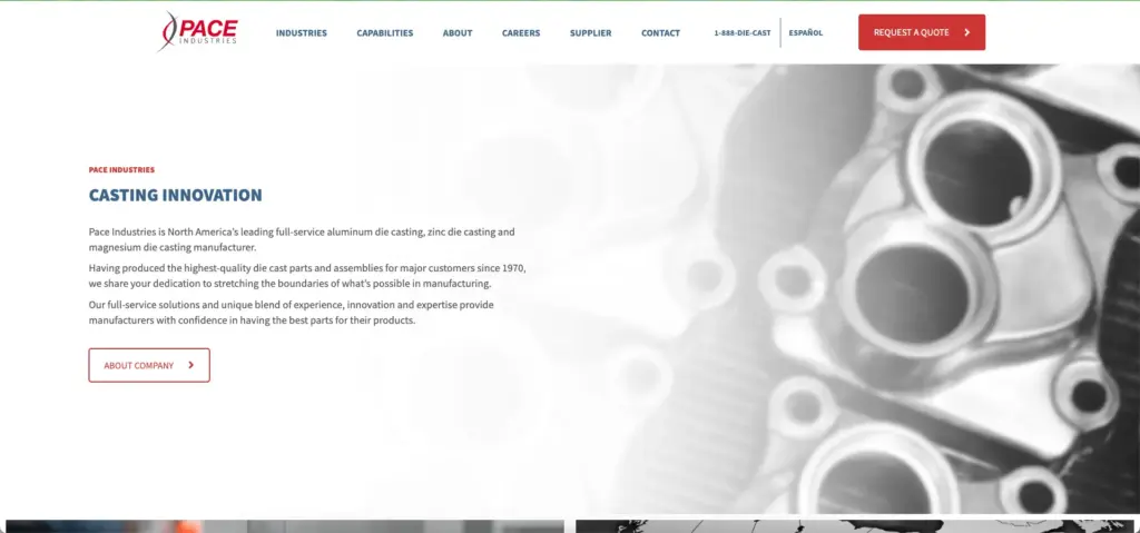 Specific Description: Pace Industries was founded in 1970 and grew into a major independent die casting company in North America, with expertise spanning aluminum, magnesio, and zinc. The company highlights broad market coverage and a long operating history building process know-how, including reputation in thin-wall die casting and diversified end markets. It is often a fit when buyers want North American production capacity with the ability to support programs from tooling through production and secondary processing.